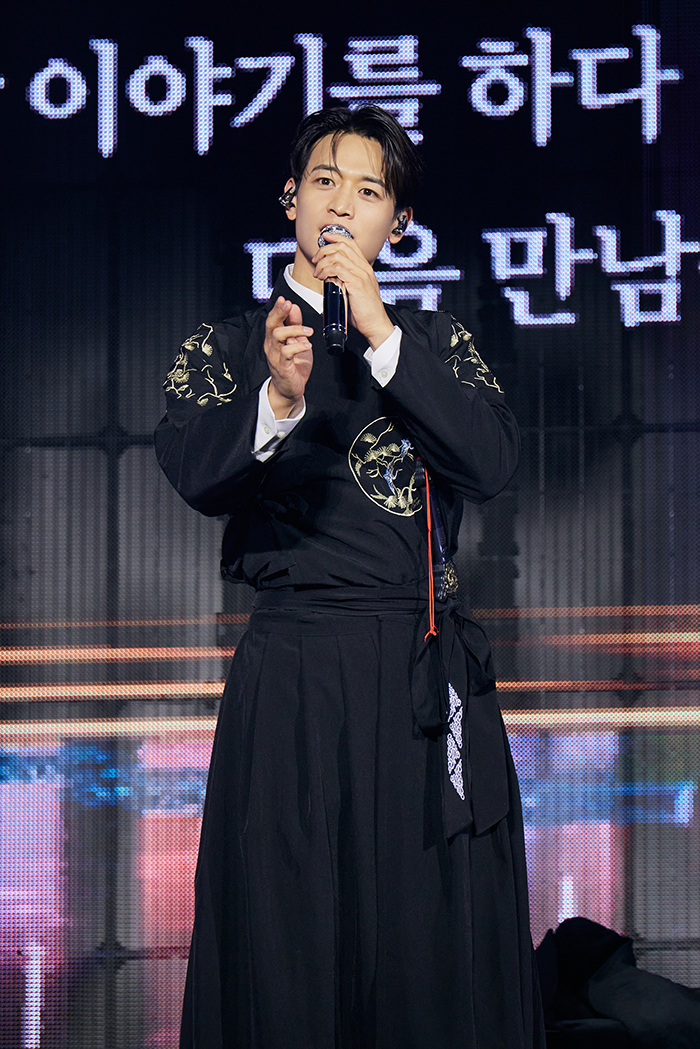 值得一提的是,珉豪带来了多首Solo歌曲舞台,包括充满心动氛围的《CALL BACK》、慵懒又性感的《Affection》、冷酷气质的《Round Kick》、日本发行曲《Romeo and Juliet》,以及在观众席中与粉丝近距离互动的《Stay for a night》。此外,他还演唱了Deli Spice的《Confession》翻唱舞台,展现细腻感性的嗓音,并首次公开了新歌《TEMPO》。该曲的歌词以按照对方希望的节奏靠近为主题,旋律从容而充满能量,引发了现场的热烈反响。