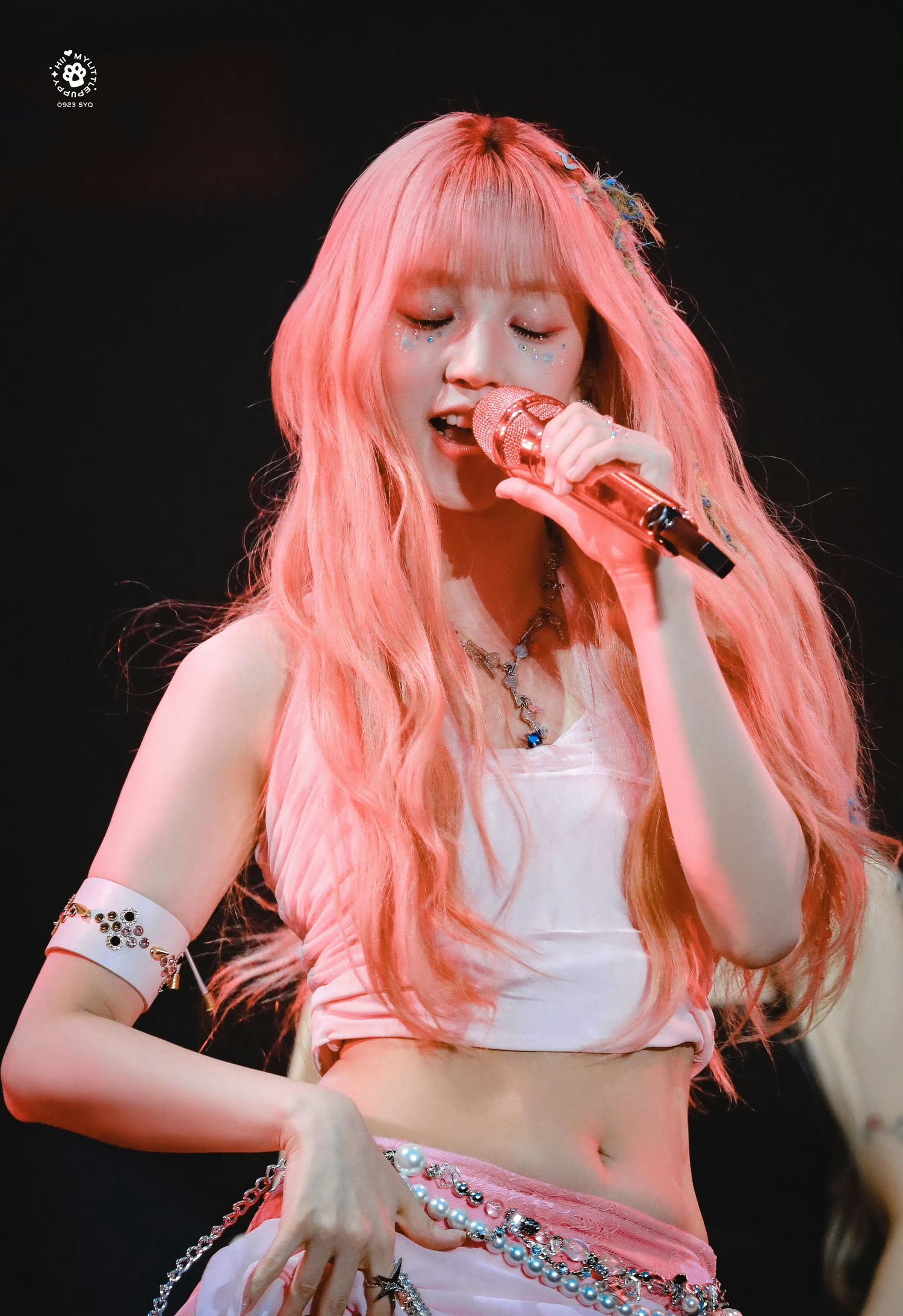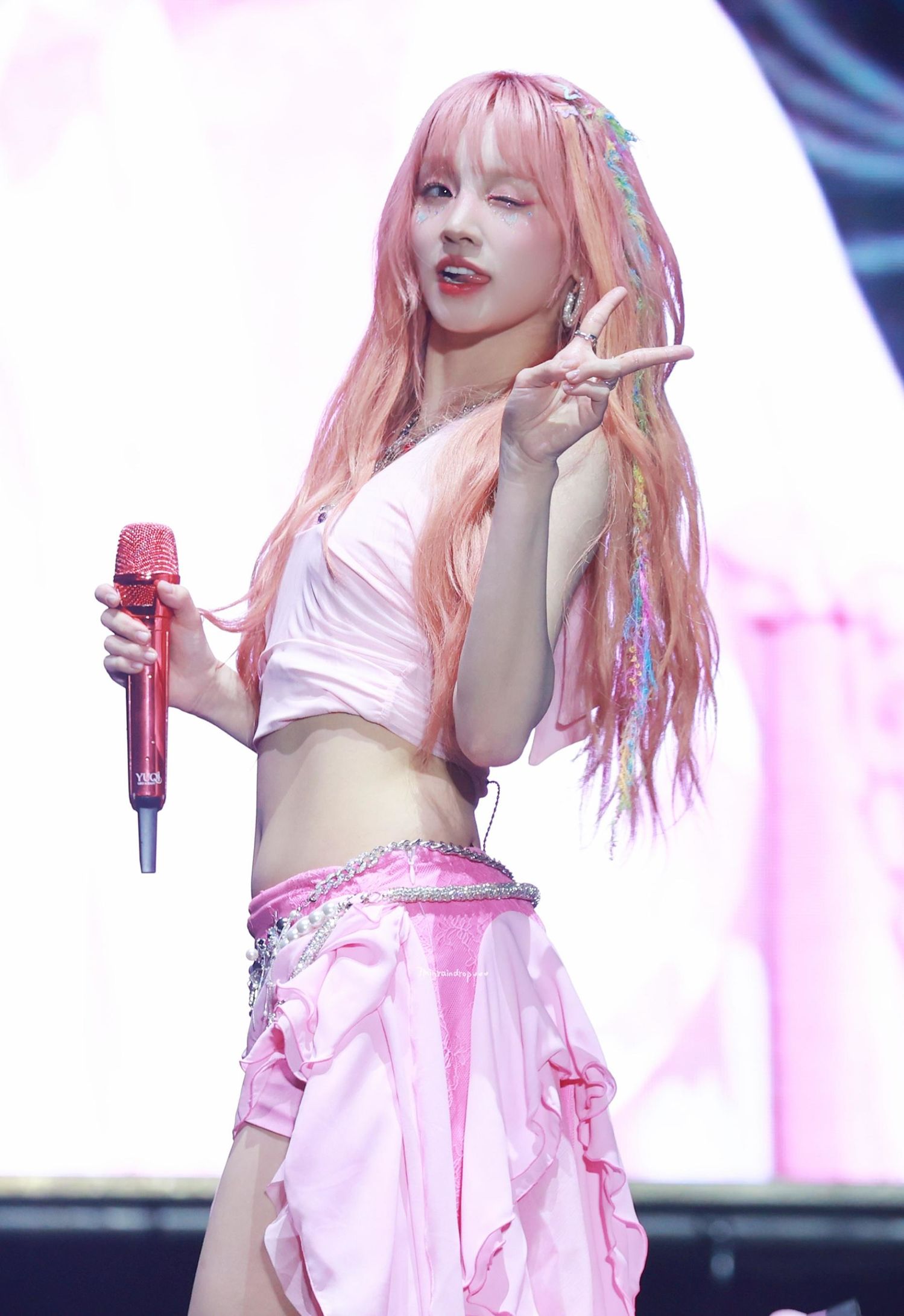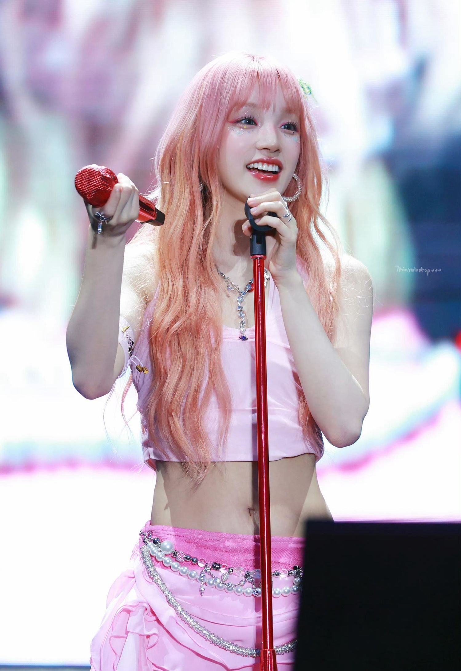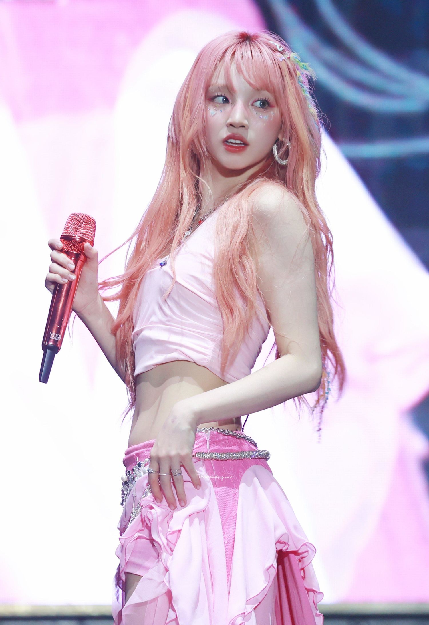 这一造型中的宋雨琦,身着一身粉色系服装,无论是上衣还是裙摆,都散发着浓厚的甜美气息。她的妆容也精心搭配,凸显了肤色的明亮和嘴唇的娇艳。在舞台上,她翩翩起舞,展现出了独特的魅力和活力,令人为之倾倒。