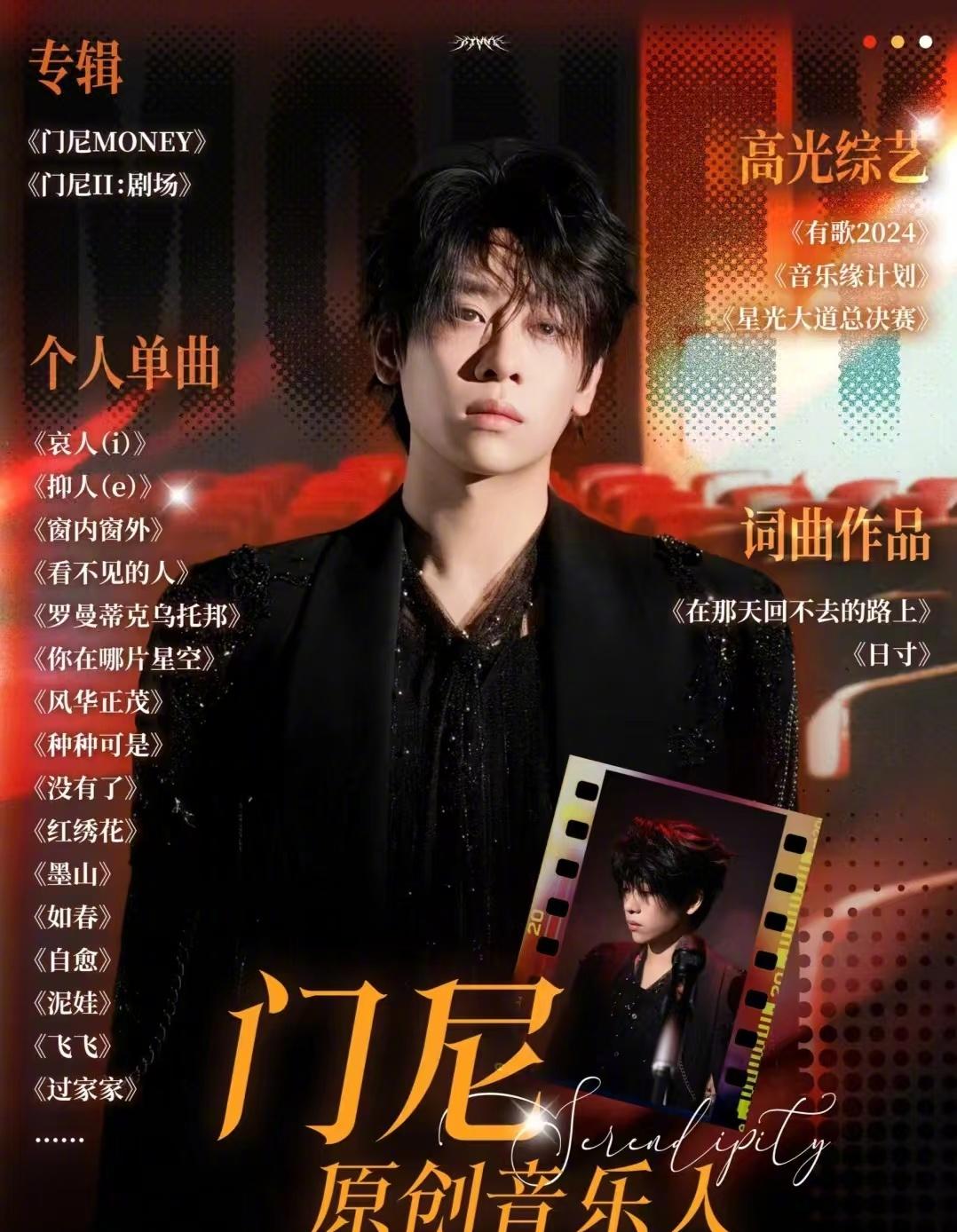 门尼的音乐作品涵盖了多种风格,每一首都展现了他独特的音乐才华。近期,歌手陈楚生演唱的《红绣花》和薛之谦演唱的《在那天回不去的路上》等歌曲,都充分展示了门尼出色的作曲能力。这些歌曲不仅在旋律上动人,而且歌词深情,让人产生共鸣。