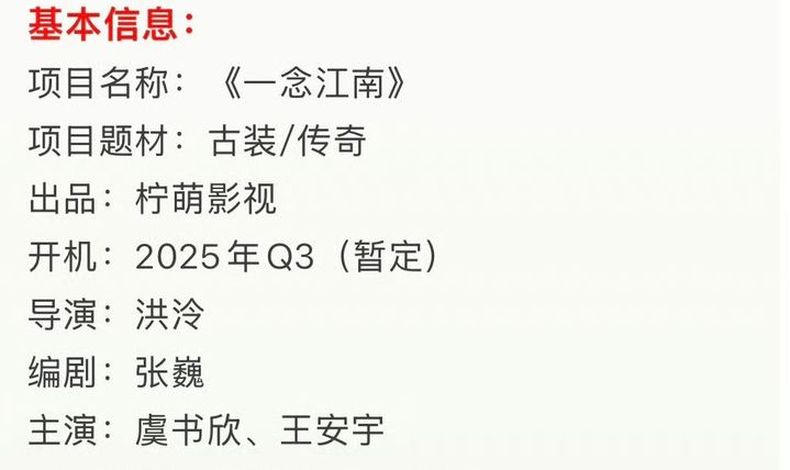 [新闻]250714 《一念江南》招商启动,虞书欣新剧期待满满