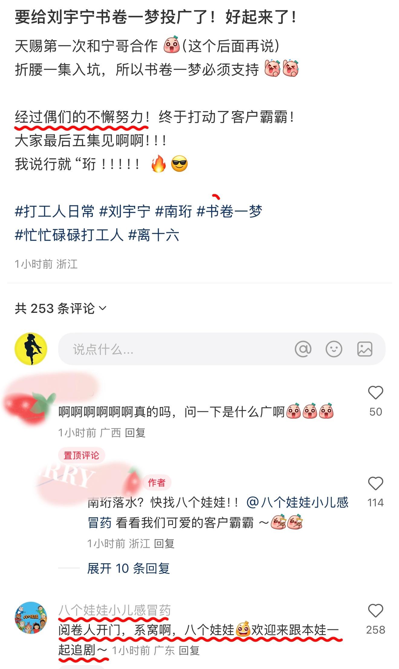 在这次招商活动中,刘宇宁的粉丝们也展现出了非常积极的态度。他们不仅积极参与活动,还通过各种方式为偶像加油打气。有的粉丝自掏腰包购买VIP、云包场,有的则积极为偶像做宣传,通过各种渠道吸引更多人参与到活动中来。这些粉丝的积极反应,不仅展现了他们对刘宇宁的支持和喜爱,也展现出了他们积极向上的精神风貌。