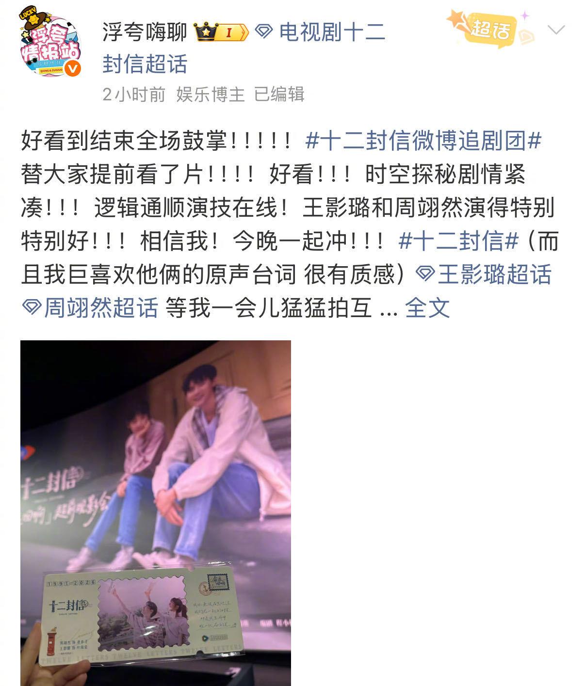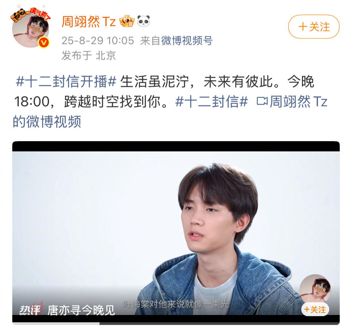 昨天在新疆官宣杀青的《翘楚》,让粉丝们对周翊然的演技有了更多的期待。而今天开播的《十二封信》,则让粉丝们看到了周翊然在演技方面的更多可能。两部剧的题材截然不同,但周翊然都能够游刃有余地驾驭,展现了他作为一个优秀演员的素养和能力。