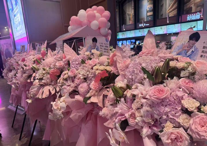 今日,电视剧《十二封信》的宣传现场热闹非凡,主演周翊然的出现更是引起了粉丝们的热烈欢呼。现场布置精美,花篮排面营造出了一片浪漫的氛围,彰显出剧组对这次宣传活动的重视。周翊然作为该剧