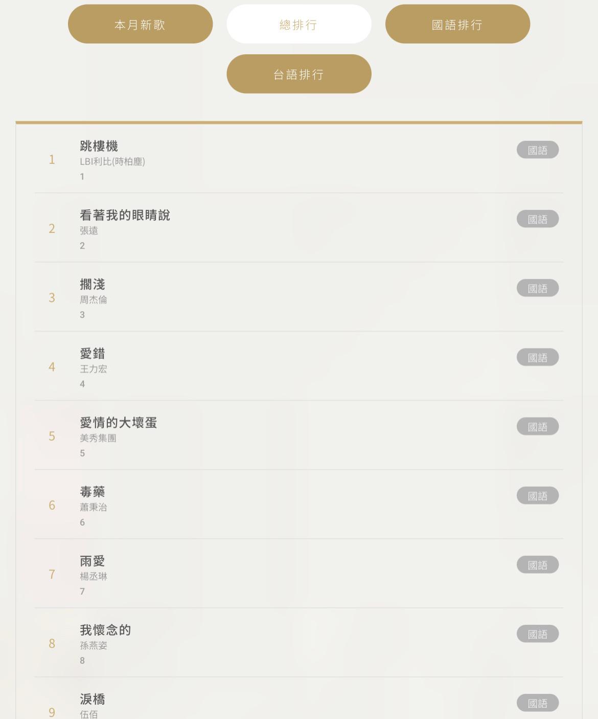 在台灣最大的音樂平台kkbox上,self.bmx_star_name的音乐成绩日榜排名第一、周榜排名第二、年榜排名第四,展现了其音乐的持久魅力。同时,在spotify華語榜、台灣榜和新加坡榜上,self.bmx_star_name也取得了优异的成绩。