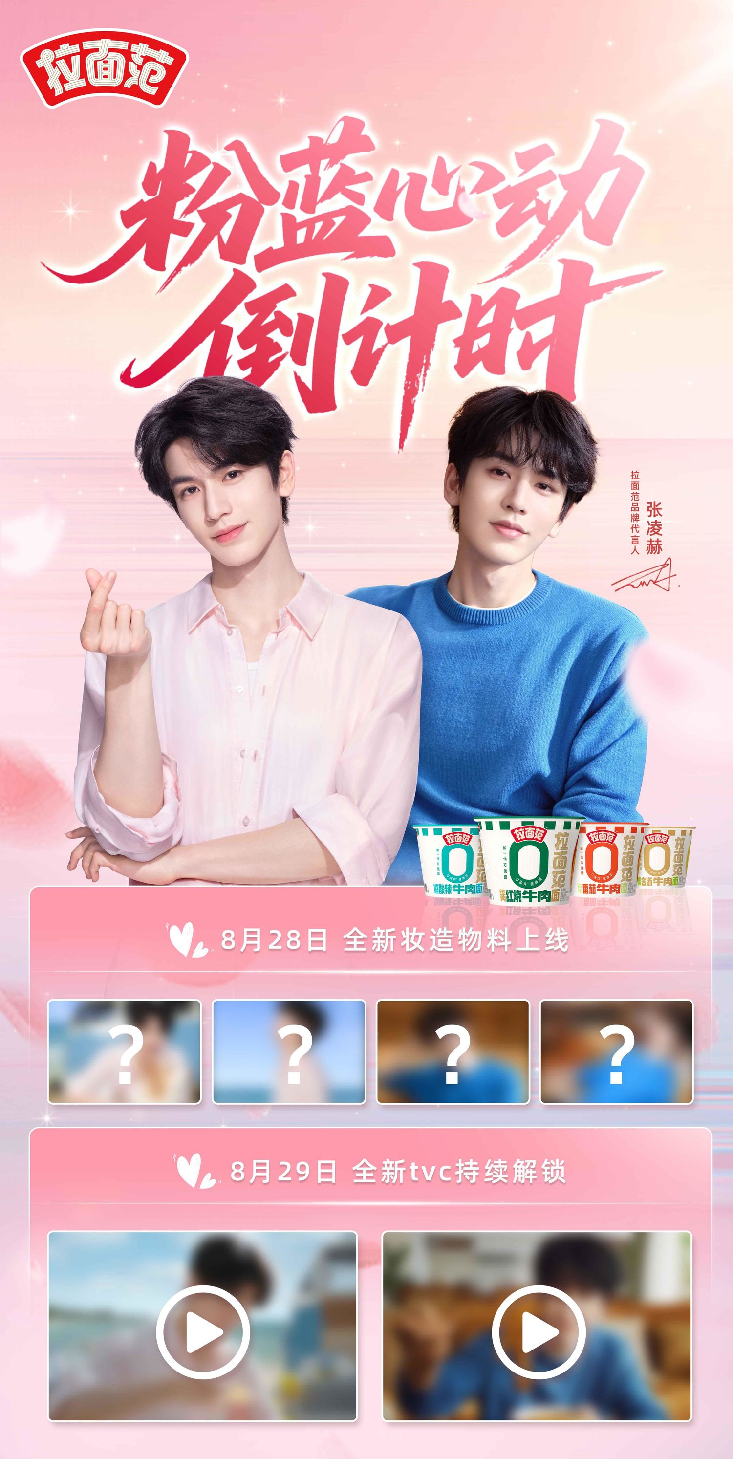亲爱的粉丝们,一个令人心动的节日特别企划正在向我们走来!我们的偶像,品牌代言人张凌赫,携手拉面范,为大家带来了一场节日的盛宴。心动节日特别企划倒计时三天已经启动,让我们一起期待这场心动惊喜吧!