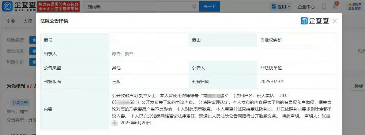 总之,刘雨昕黑粉登报道歉的事件,不仅是对个人权益的维护,更是对网络环境的积极整顿。我们应该以此为契机,倡导文明上网、理性表达、尊重他人的良好风气,共同营造一个和谐、美好的网络环境。