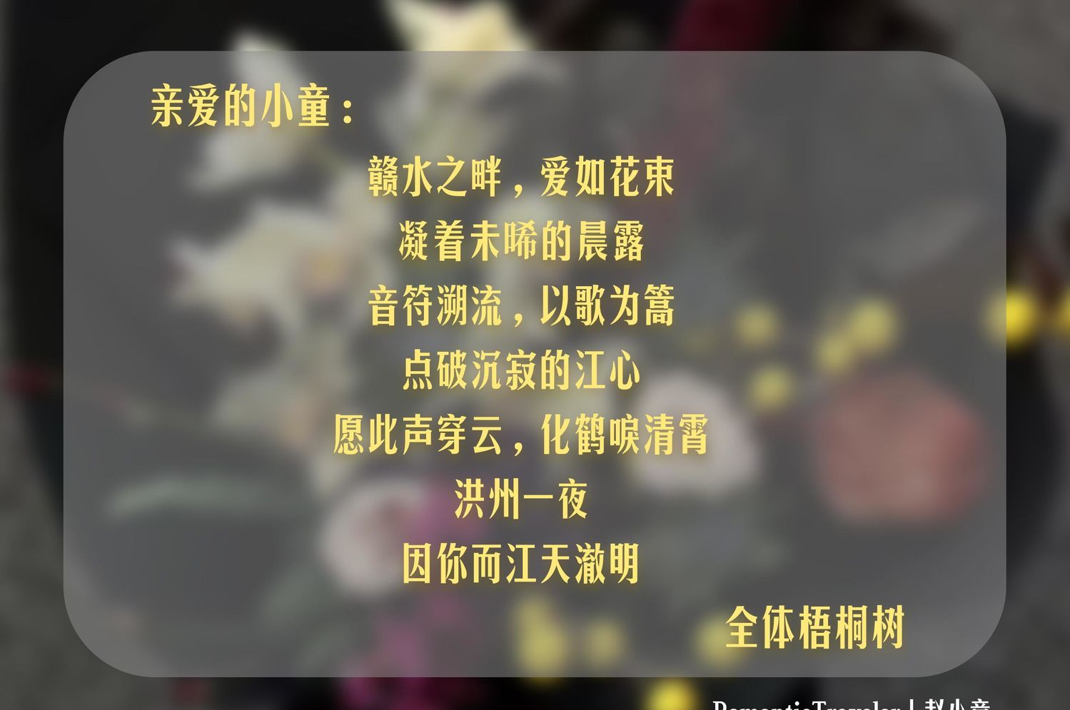 而此次南昌巡演的应援活动更是别具一格。粉丝们为了表达对赵小童的支持和喜爱,特地为他准备了个人鲜花应援。一束束美丽的鲜花,代表着粉丝们对赵小童的祝福和鼓励。这些鲜花如同赵小童的演技一样,为演出增添了一抹亮丽的色彩。