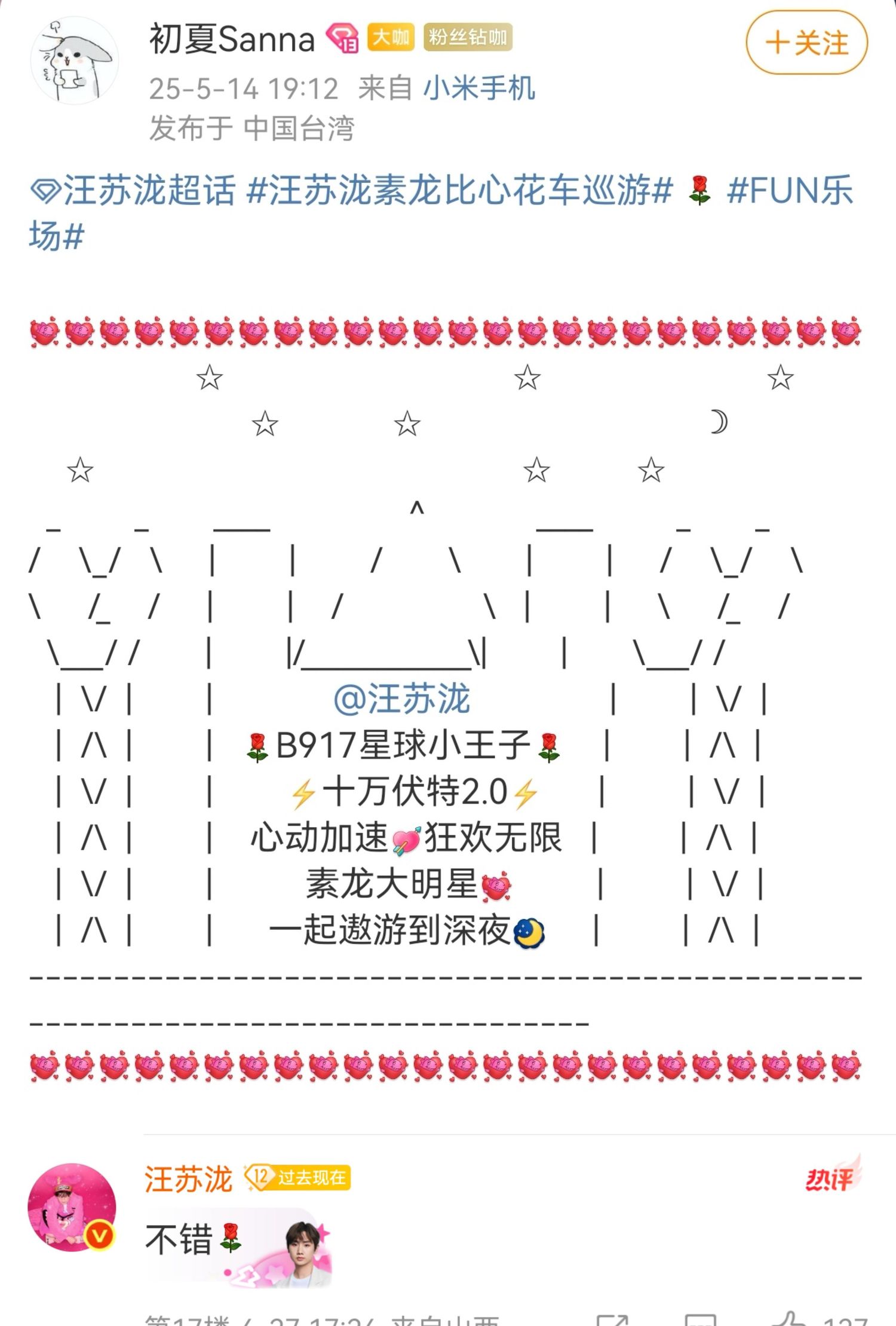 这次花车巡游活动,不仅是一次简单的娱乐活动,更是汪苏泷与粉丝们之间的一次亲密接触和心灵交流。相信在未来的日子里,汪苏泷会继续努力,为粉丝们带来更多美好的回忆和感动。