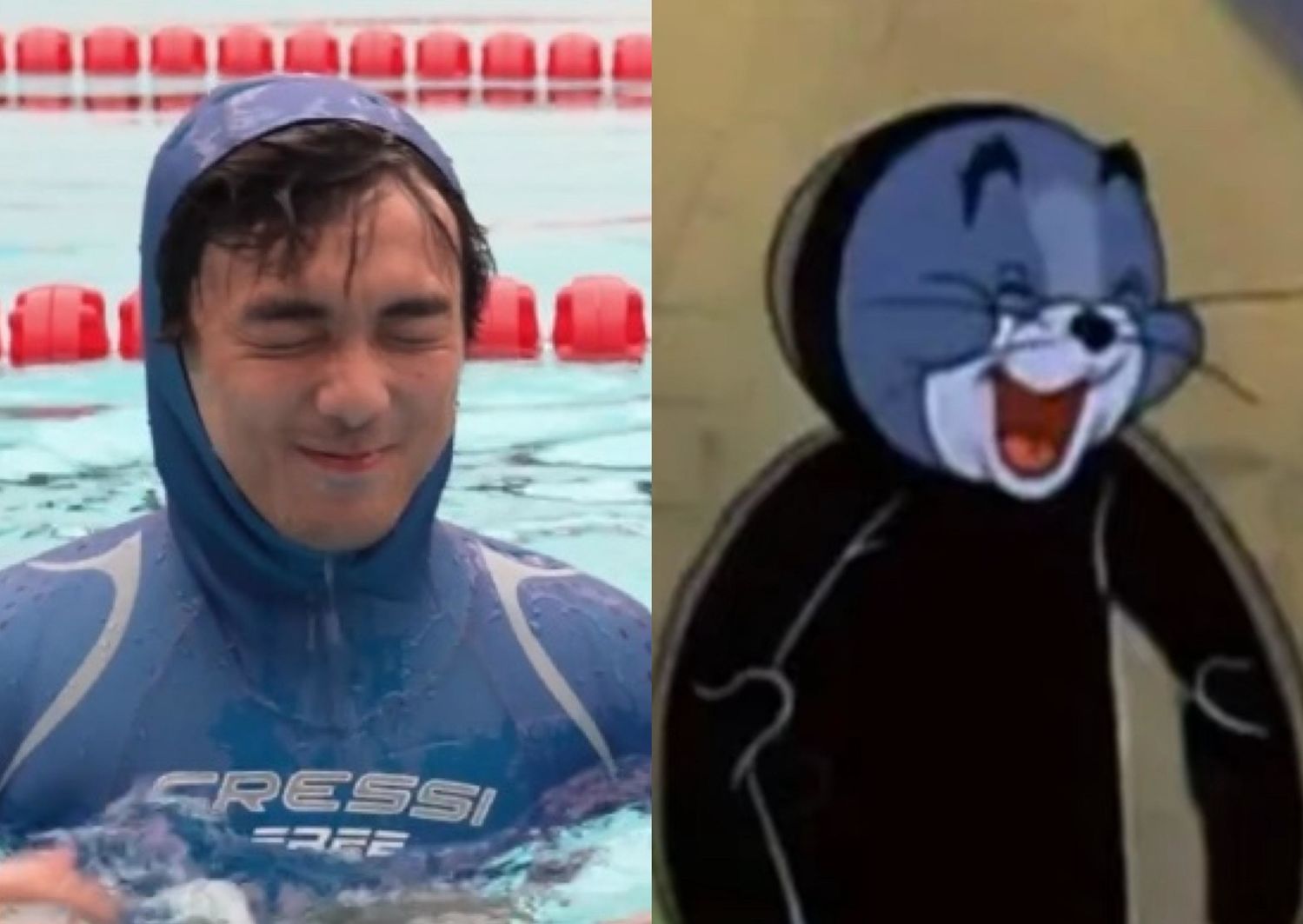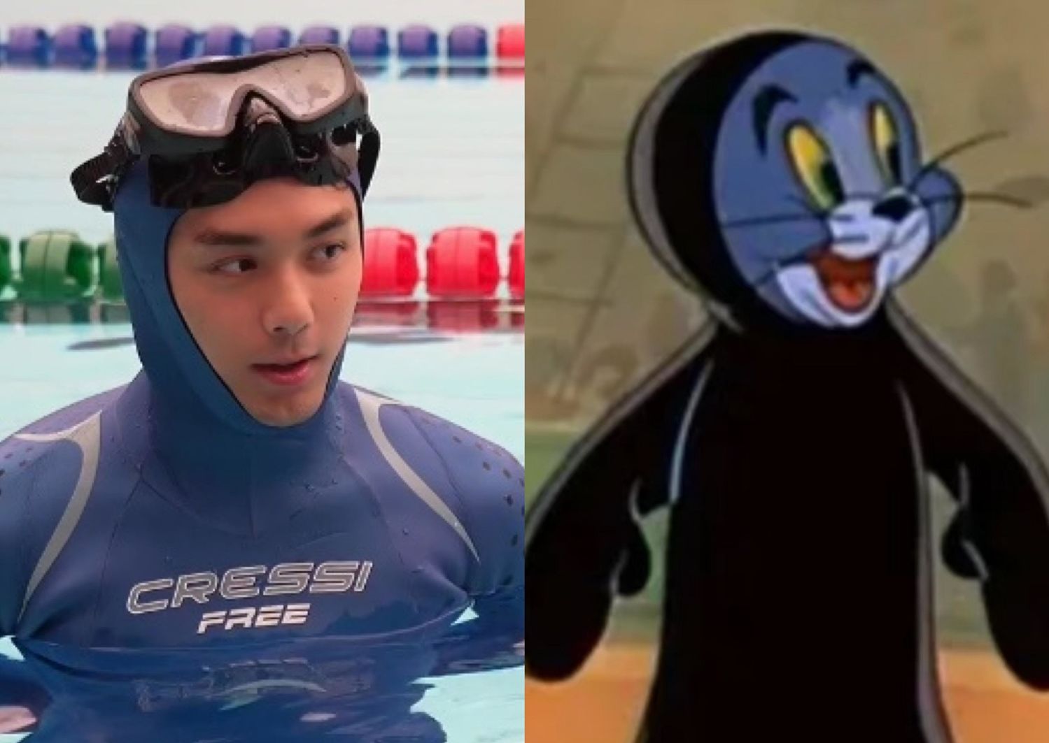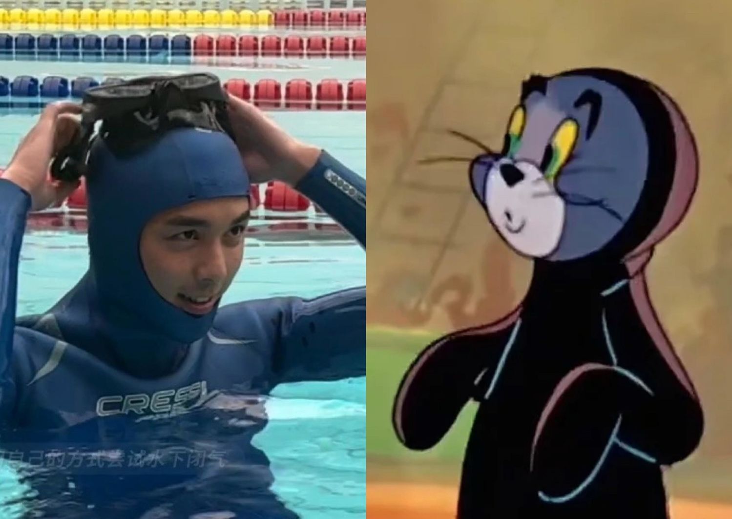 在某次水下训练视频中,吴磊穿着湿衣,圆溜溜的头配上无辜的大眼睛,确实与汤姆猫形象相似。不少网友表示,看到这样的吴磊,仿佛看到了汤姆猫的真人版。他的水下训练表现更是令人赞叹,闭气、游泳等动作都十分熟练,教练也夸赞他的天赋。