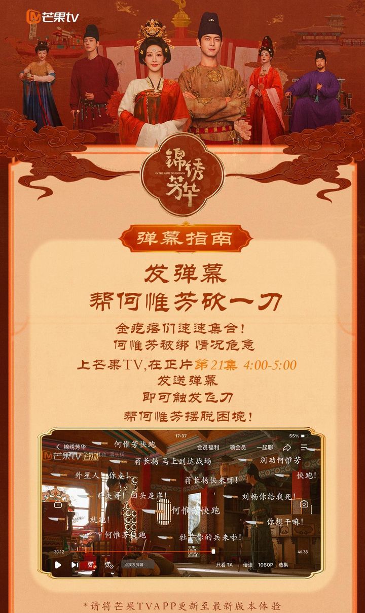 近期,电视剧《锦绣芳华》剧情持续高能,吸引了众多粉丝的关注和热议。剧中,何惟芳陷入危机,引发了观众的强烈共鸣。为了助力偶像,粉丝们纷纷参与芒果TV的互动活动,为正片发送弹幕,为何惟