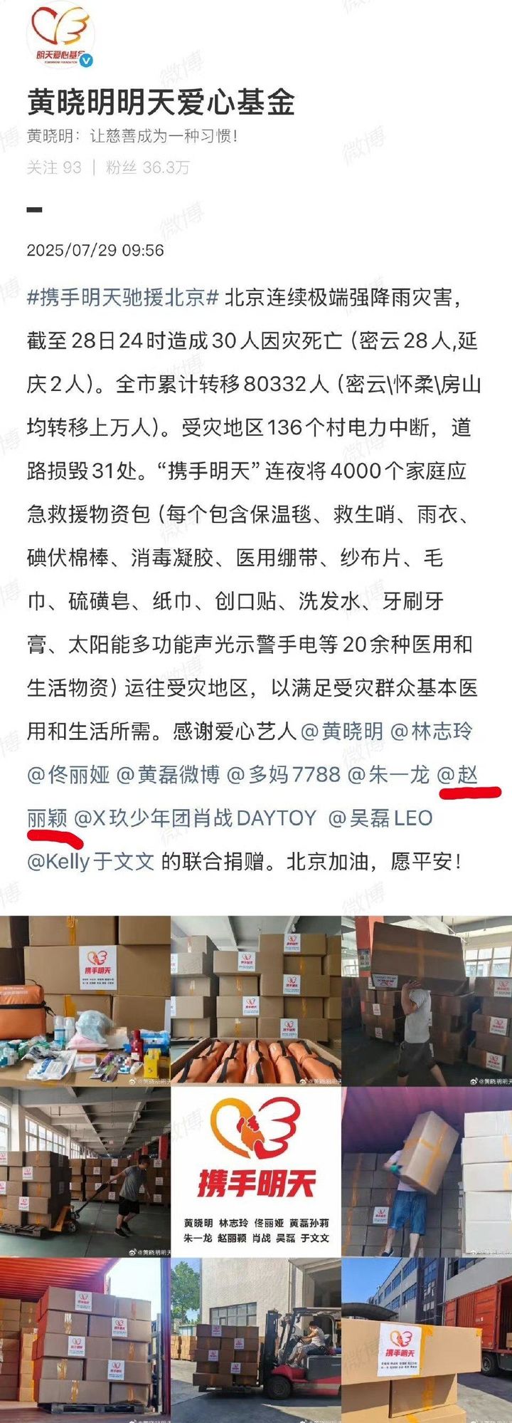 [新闻]250729 赵丽颖公益之心,正能量形象备受赞誉