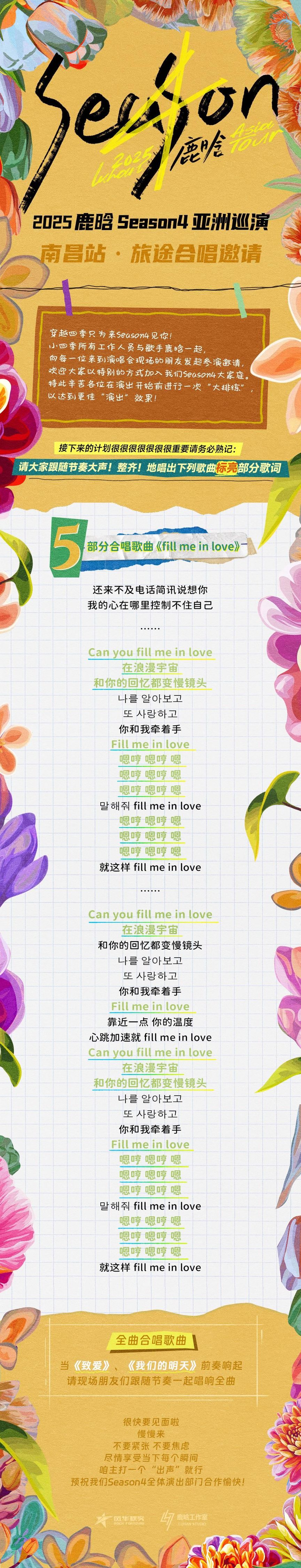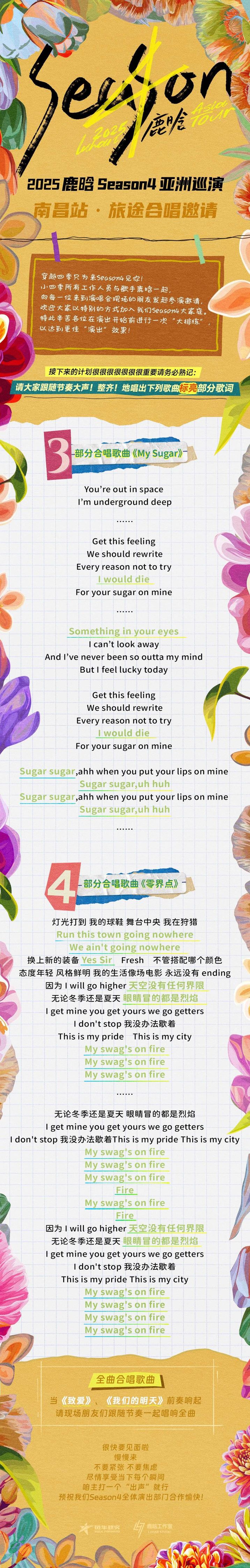 亲爱的鹿晗粉丝们,又是一个激动人心的时刻!鹿晗的season4亚洲巡演即将开启南昌站的精彩演出。这次,我们有幸向所有热爱音乐、热爱鹿晗的粉丝们发出一个特别的邀请——一起参加这场难忘的旅途合唱!