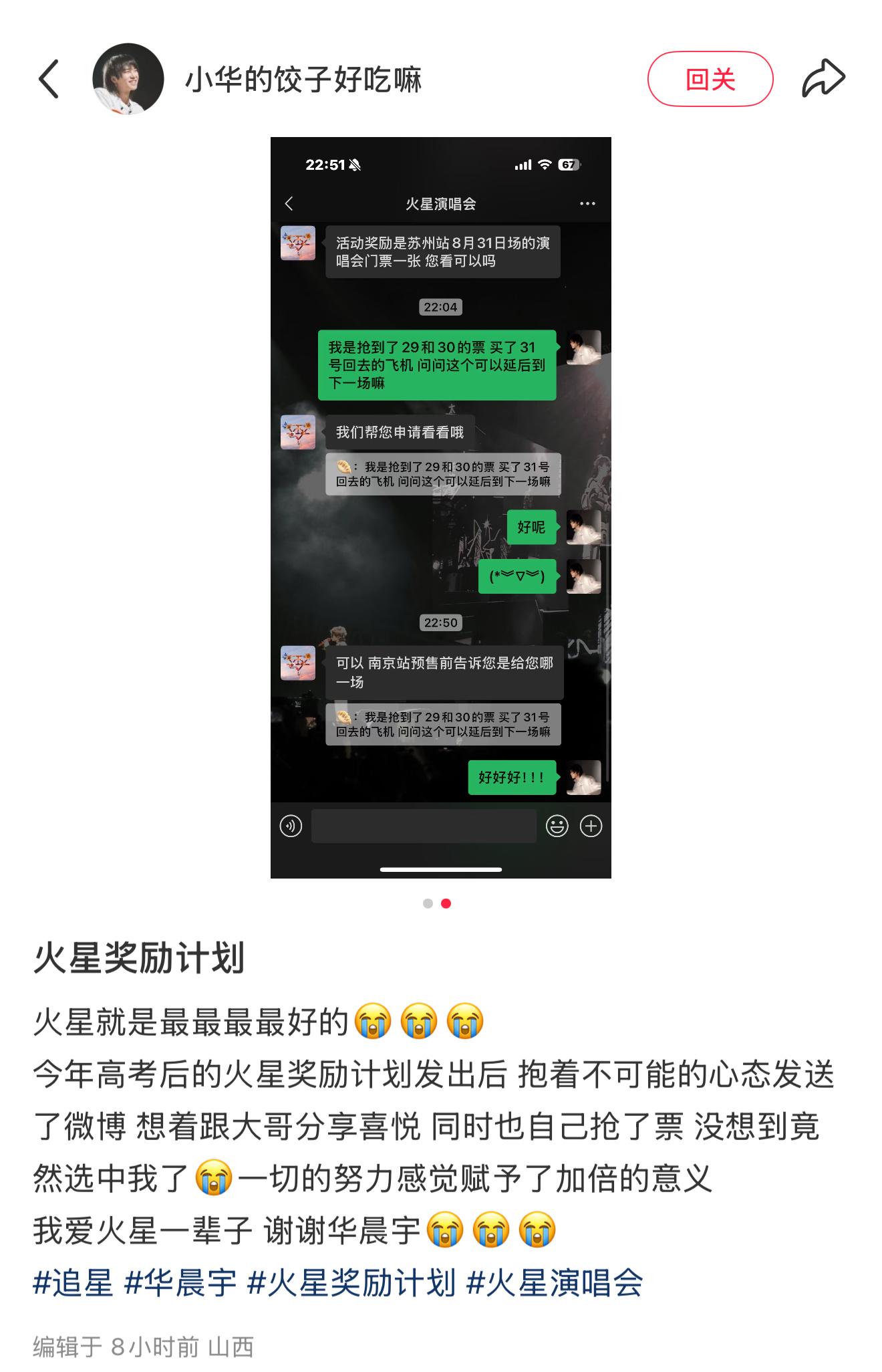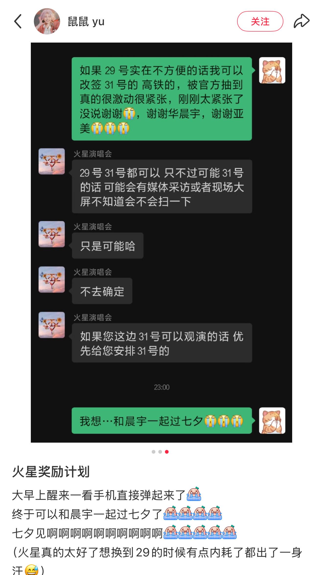 据悉,火星奖励计划是华晨宇为了感谢一直支持他的粉丝而设立的一项计划。他希望通过这一计划,鼓励粉丝们在学业、事业、生活等方面努力奋斗,实现自己的梦想。粉丝们纷纷表示,这一计划让他们感受到了偶像的认可和鼓励,也让他们更加坚定了追求梦想的信念。