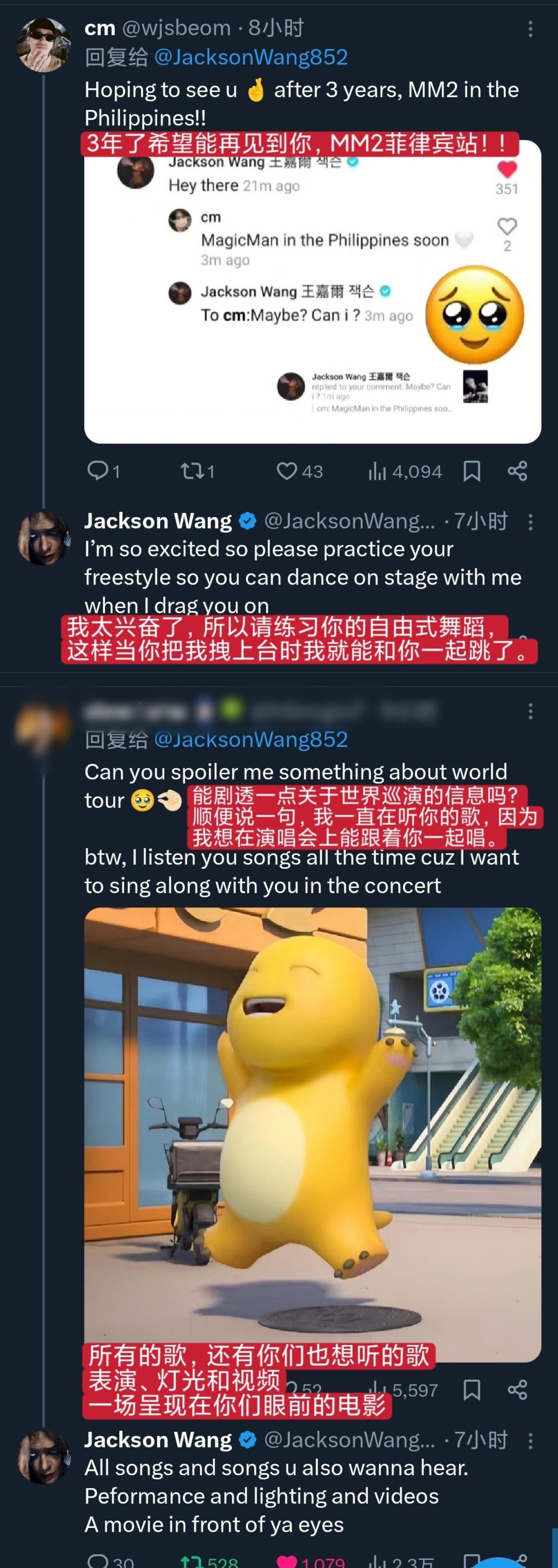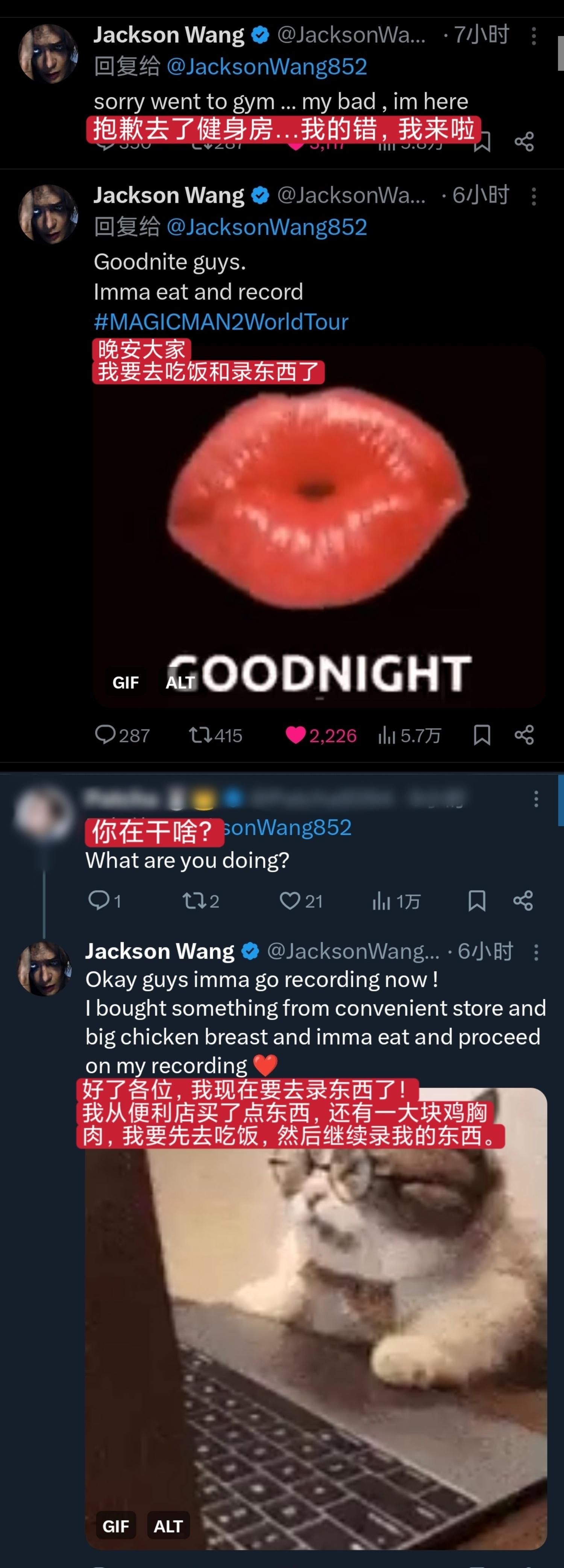 另外,王嘉尔还提到了自己的新专辑《magicman2》和全球巡演。他表示正在积极准备新专辑,并期待能够在全球巡演中带给粉丝们更多的惊喜。粉丝们纷纷表示期待,留言评论中充满了对王嘉尔的热爱和支持。