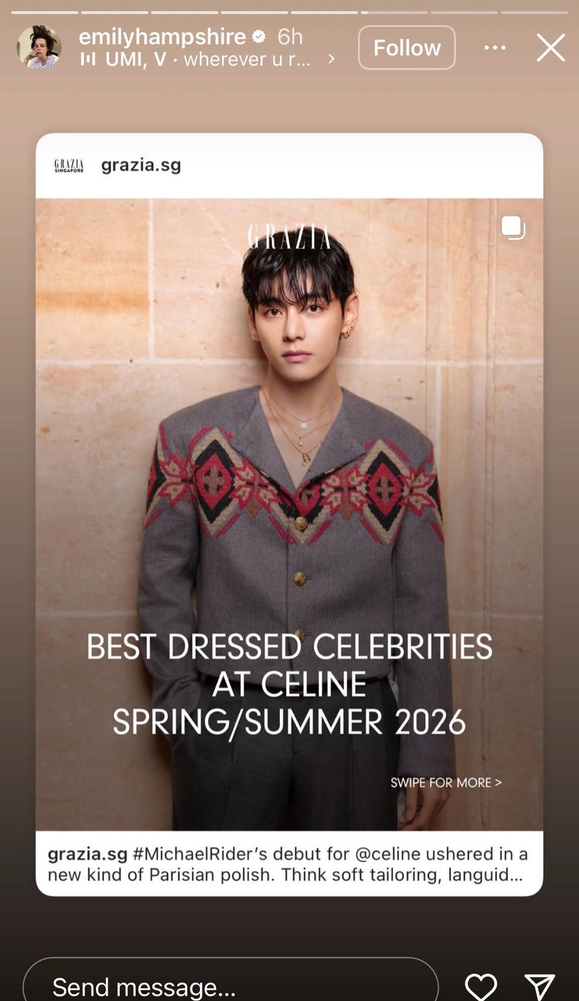 演员Emily Hampshire在自己的社交媒体上表示,她很少会让人介入她与新朋友的交往之中,但金泰亨是个例外。这一言论引发了广大粉丝们的关注。此外,在昨日的CELINE大秀中,Emily Hampshire与时尚界的传奇人物Anna Wintour邻座,展现了金泰亨的广泛影响力。她还曾出演过电视剧《富家穷路》《十二猴子》,是一位备受瞩目的演员。