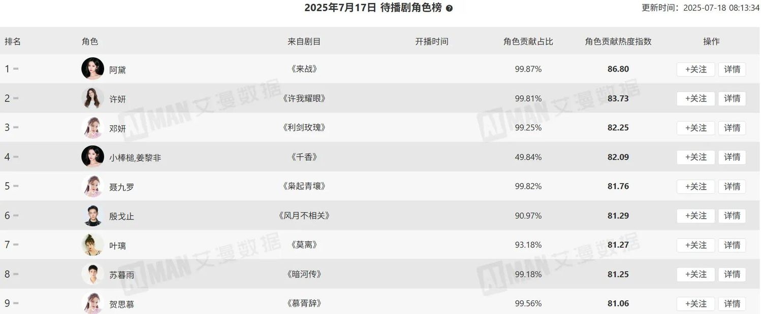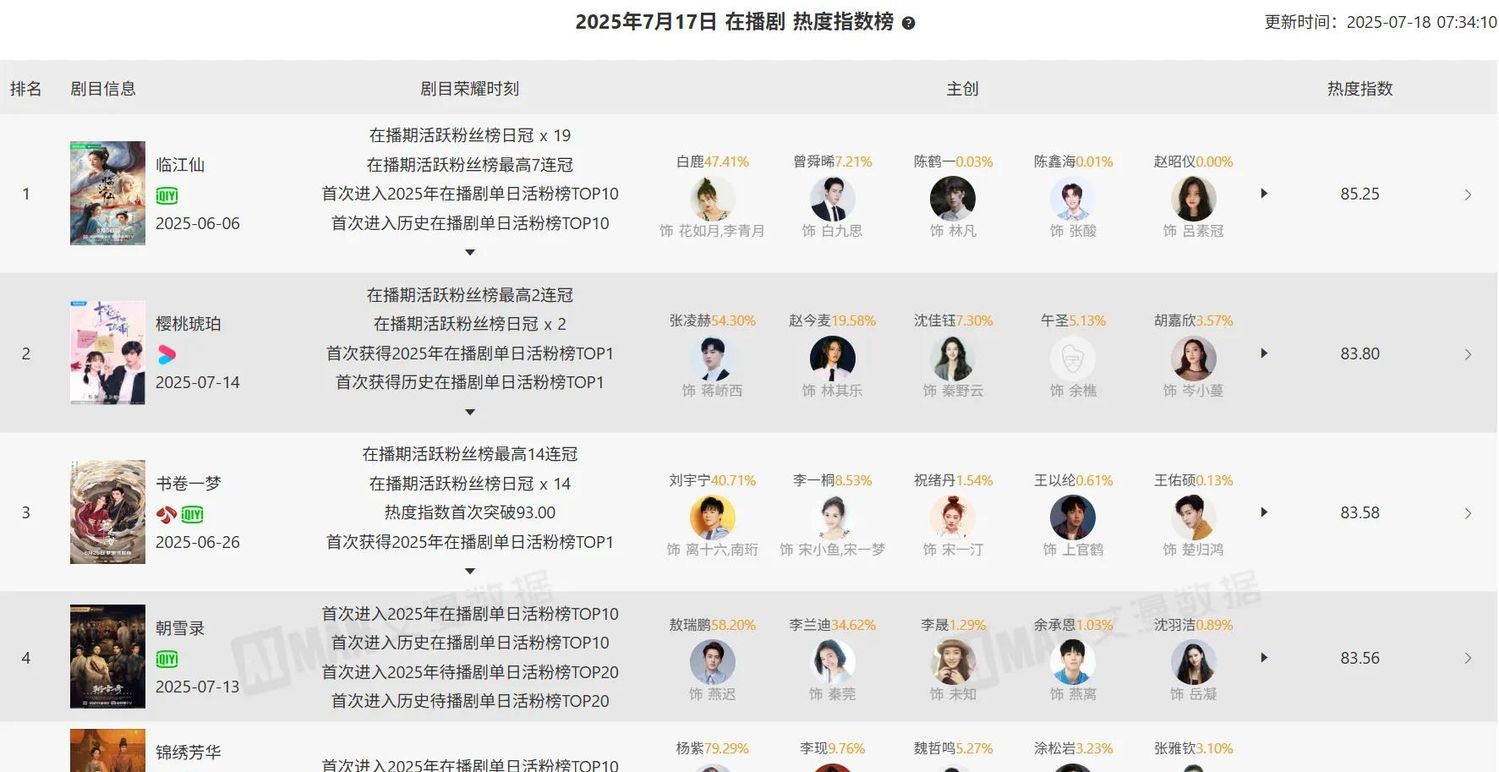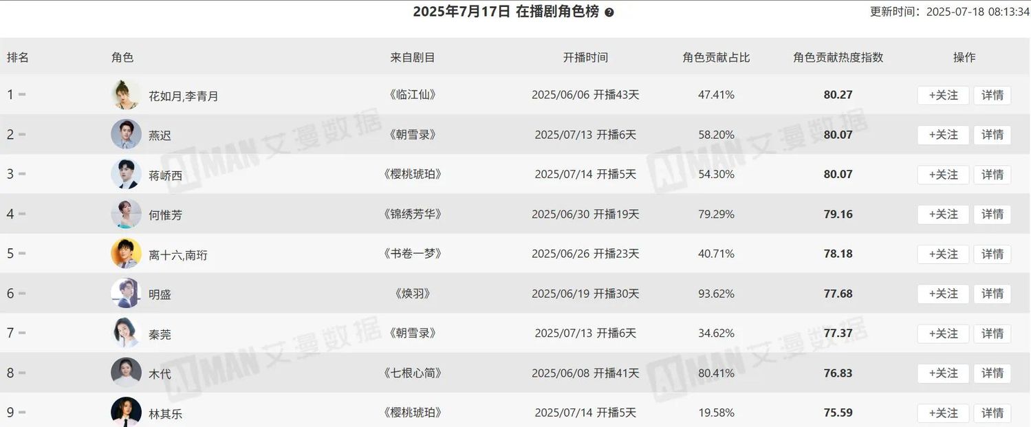 《临江仙》作为白鹿的代表作之一,不仅在角色活跃粉丝数量上取得了显著的成绩,还在互动榜、个人热度、站内讨论度等方面都有着出色的表现。白鹿作为一位实力派演员,凭借其精湛的演技和出色的表现,成功地将角色演绎得淋漓尽致,赢得了众多观众的喜爱和认可。
