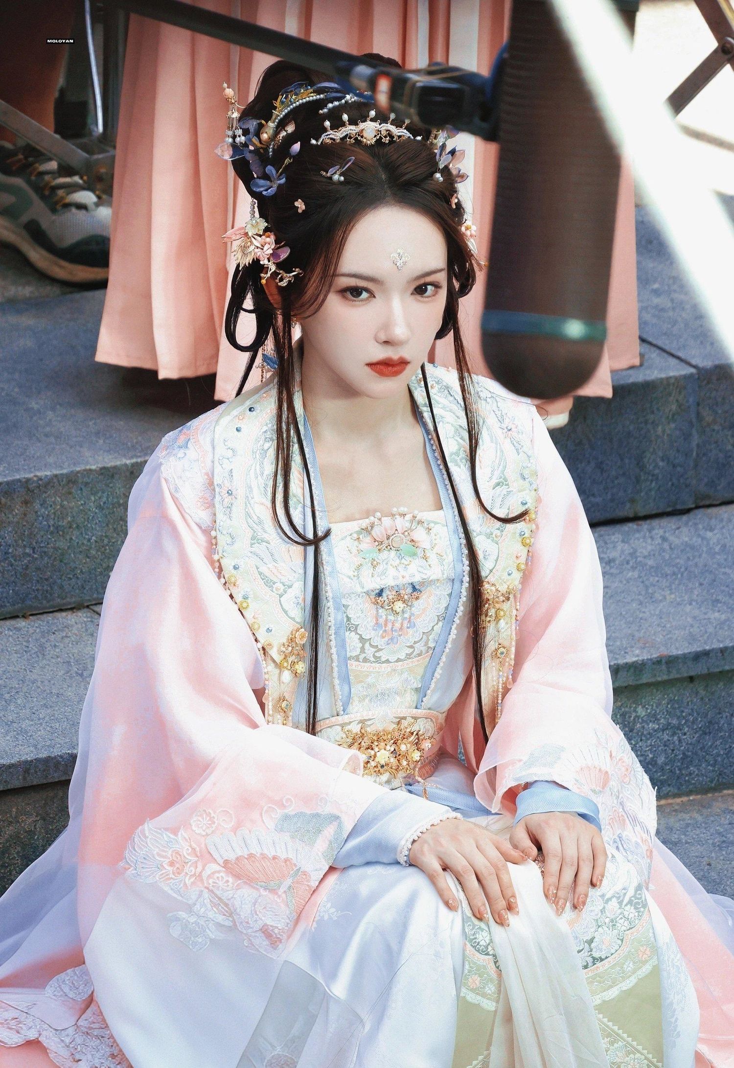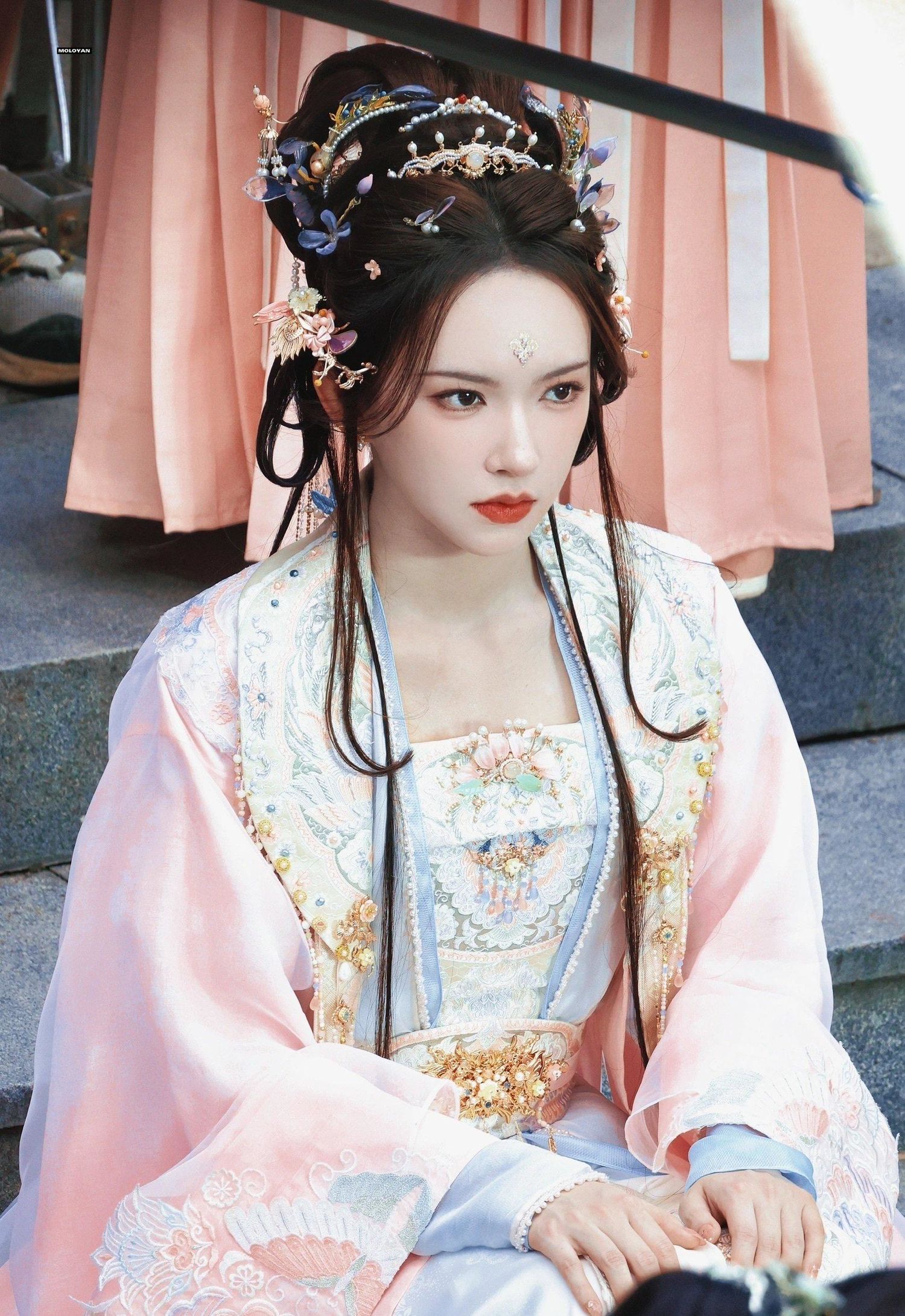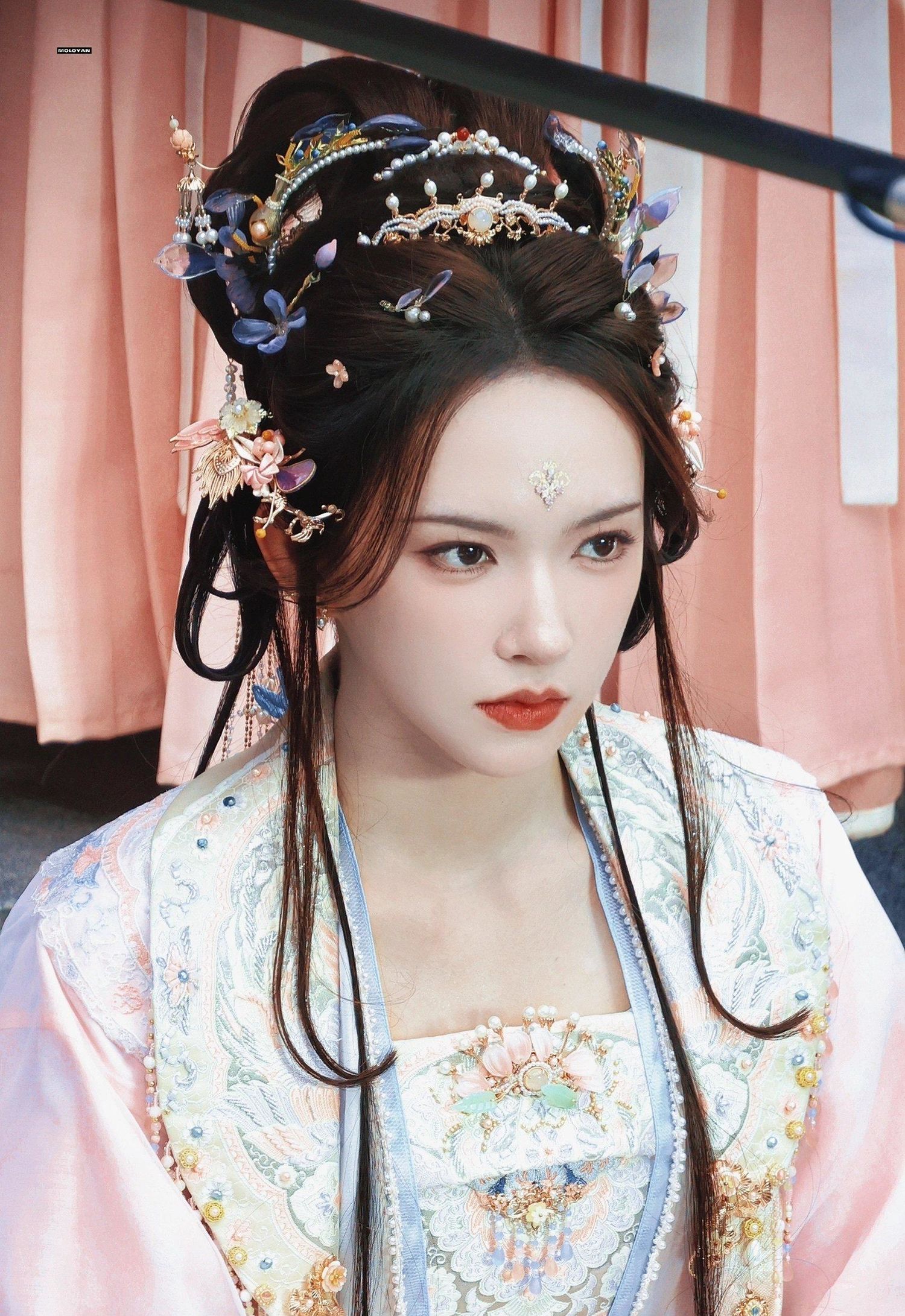 程潇的古装造型华美而精致,无论是服饰、发型还是妆容,都展现出了古典美的韵味。她的形象与古典角色完美融合,让人感受到了浓厚的古典氛围。这种华丽的造型风格,无疑将程潇的美丽推向了一个新的高度。