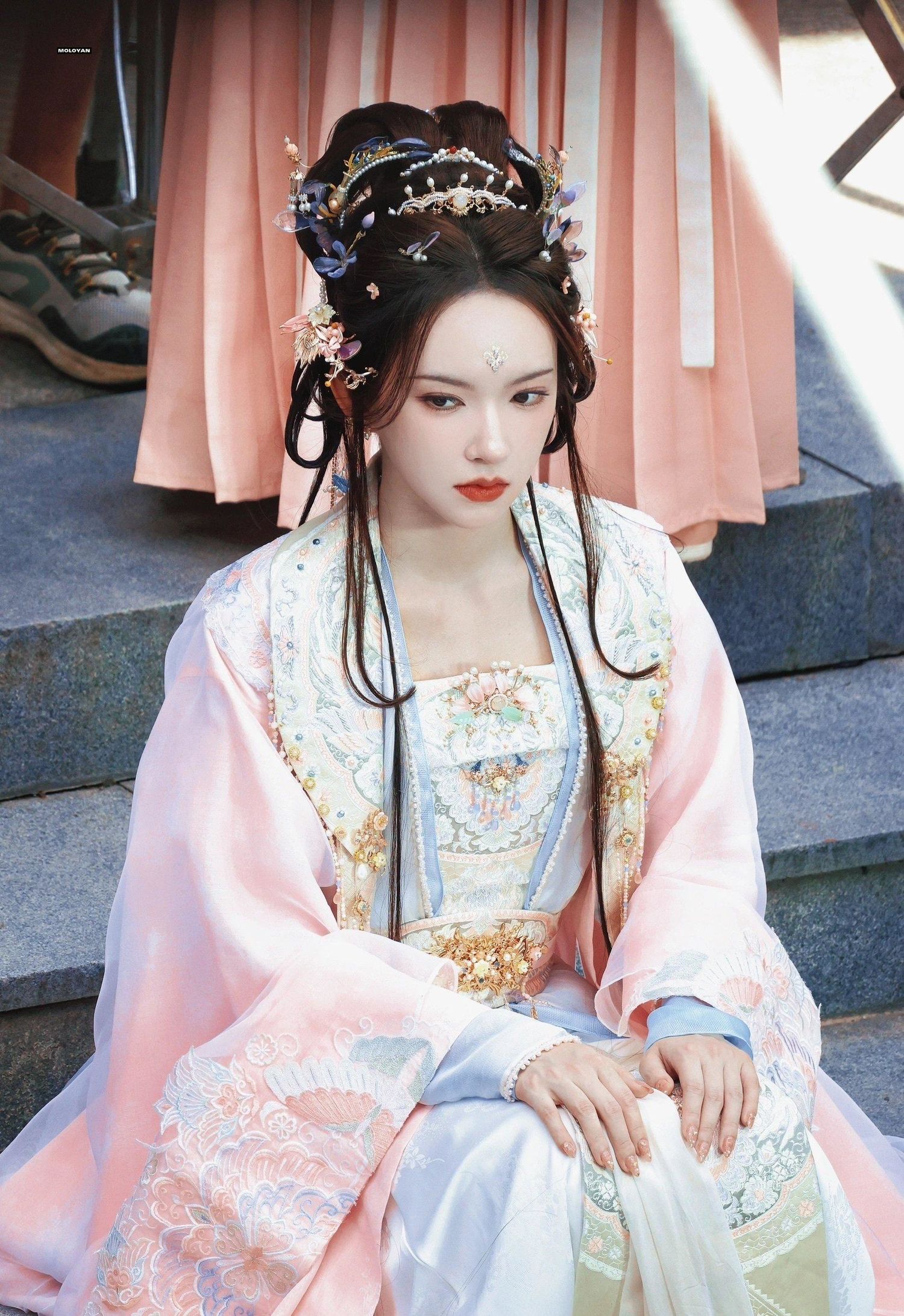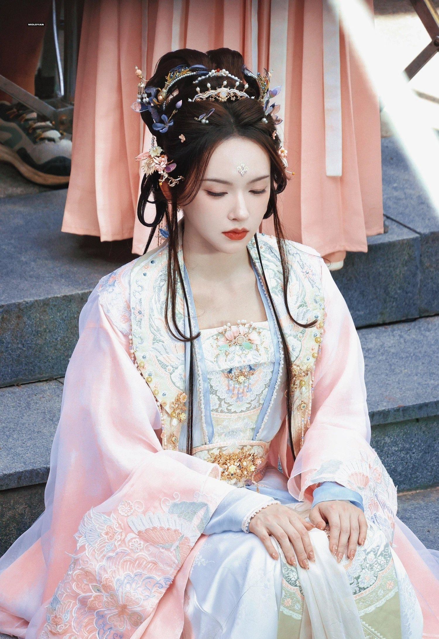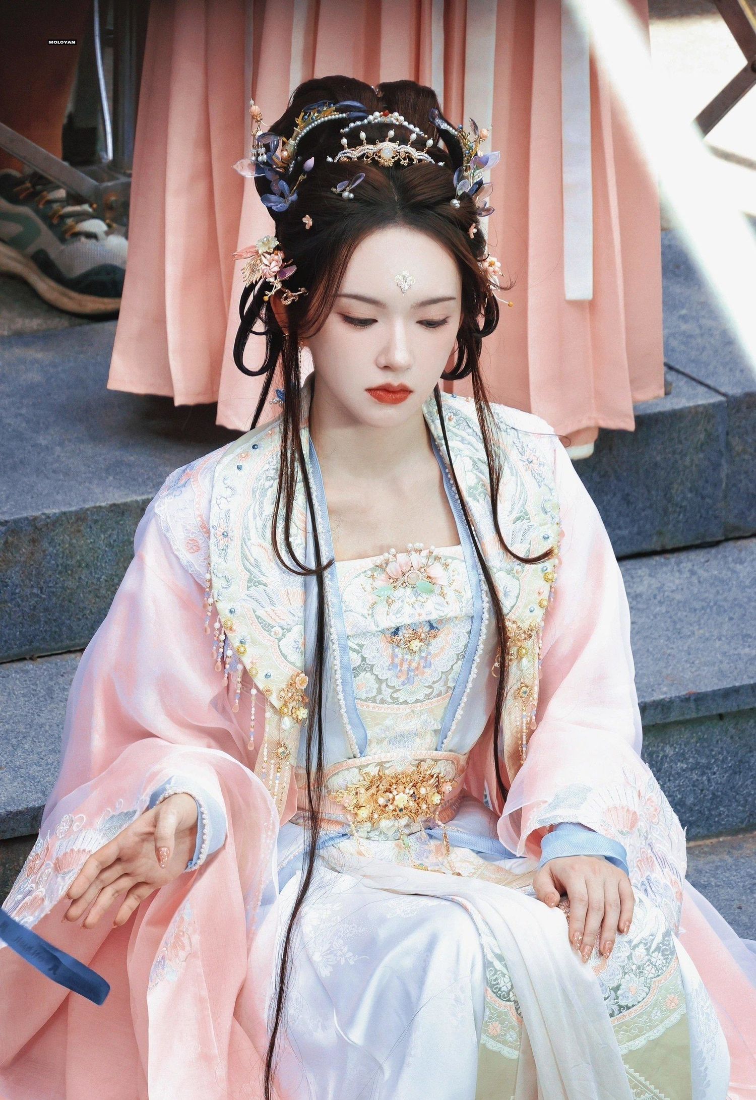 程潇的古装造型华美而精致,无论是服饰、发型还是妆容,都展现出了古典美的韵味。她的形象与古典角色完美融合,让人感受到了浓厚的古典氛围。这种华丽的造型风格,无疑将程潇的美丽推向了一个新的高度。