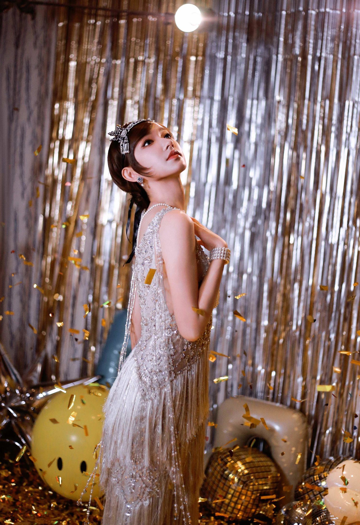在这组照片中,程潇身着一件精美的星钻纱裙,整个人散发出璀璨的光芒。纱裙的设计精致而优雅,闪亮的星钻点缀在裙摆间,犹如夜空中的繁星。程潇的曼妙身姿完美地展现了这件星钻纱裙的魅力,让人不禁为之惊叹。