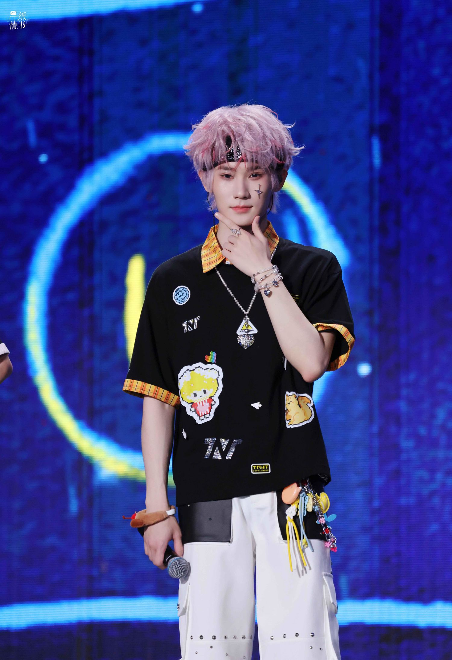 彩色钻石珍珠长项链流转璀璨光芒,为张真源增添了一份华丽浪漫的氛围。这项链的设计独特,色彩绚丽,与张真源的个性相得益彰。他佩戴这项链出席活动时,无疑成为了全场瞩目的焦点。