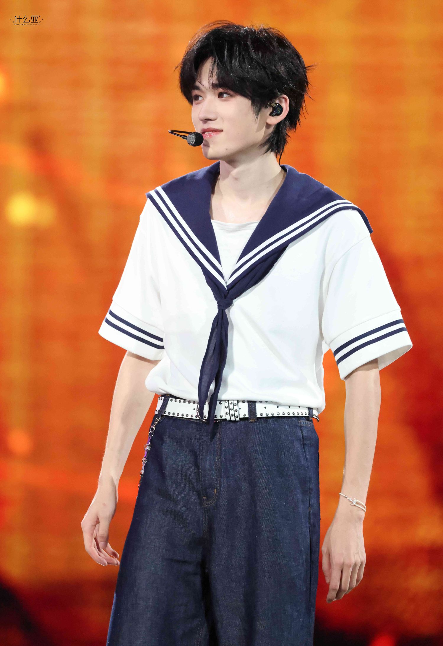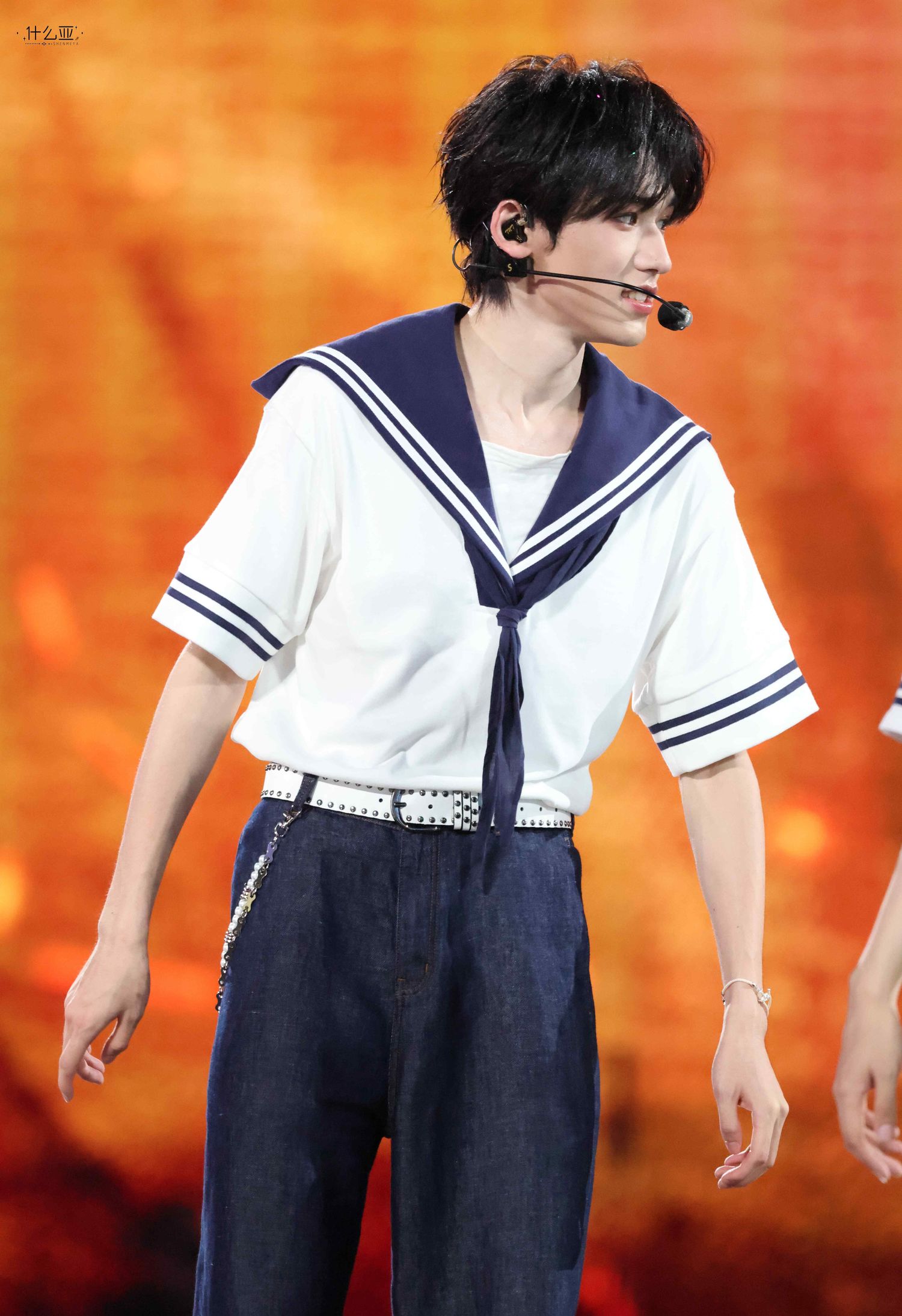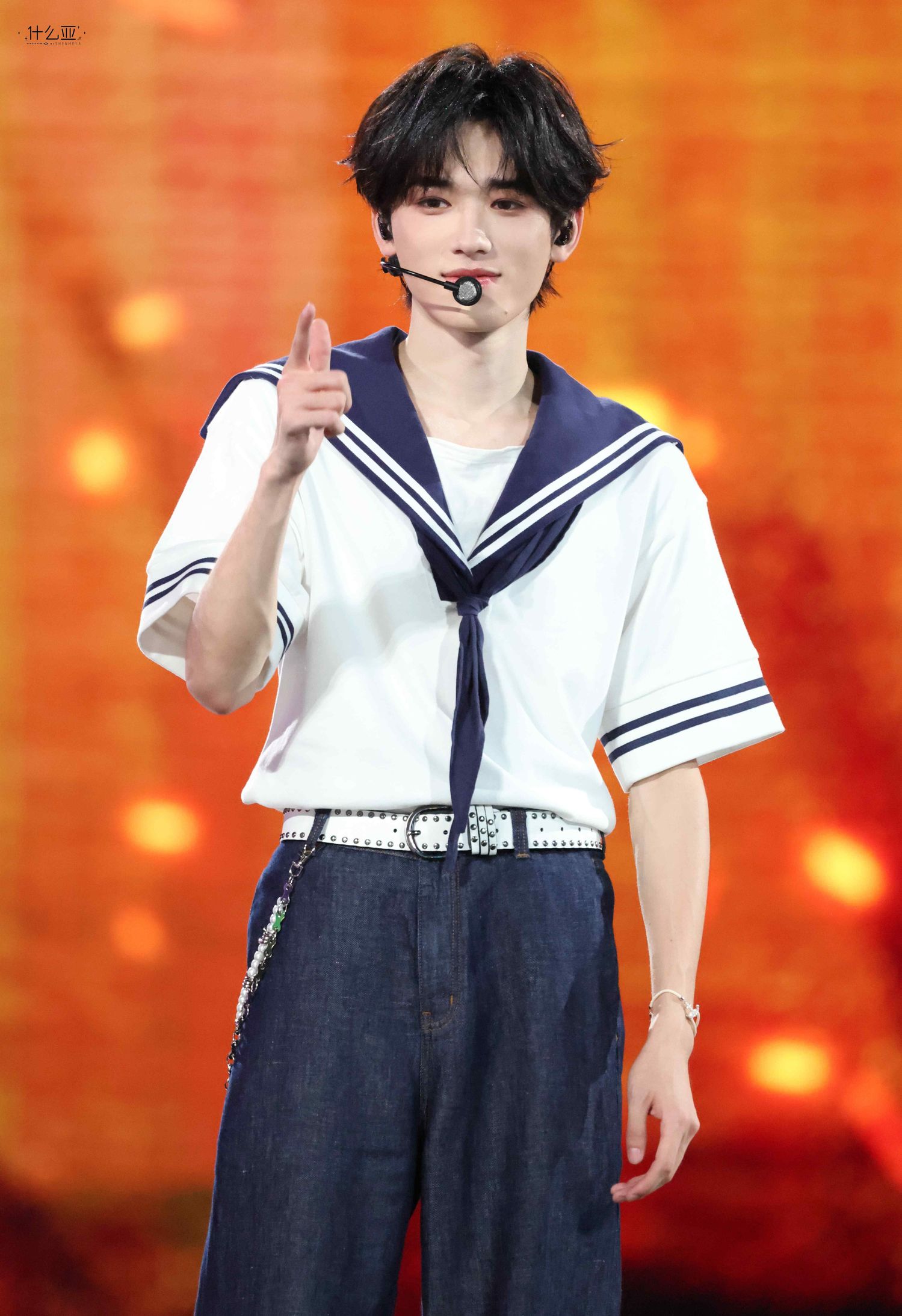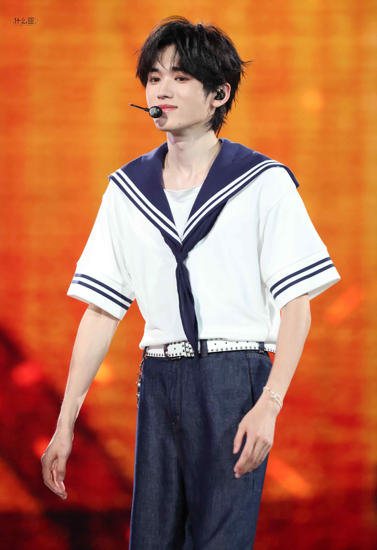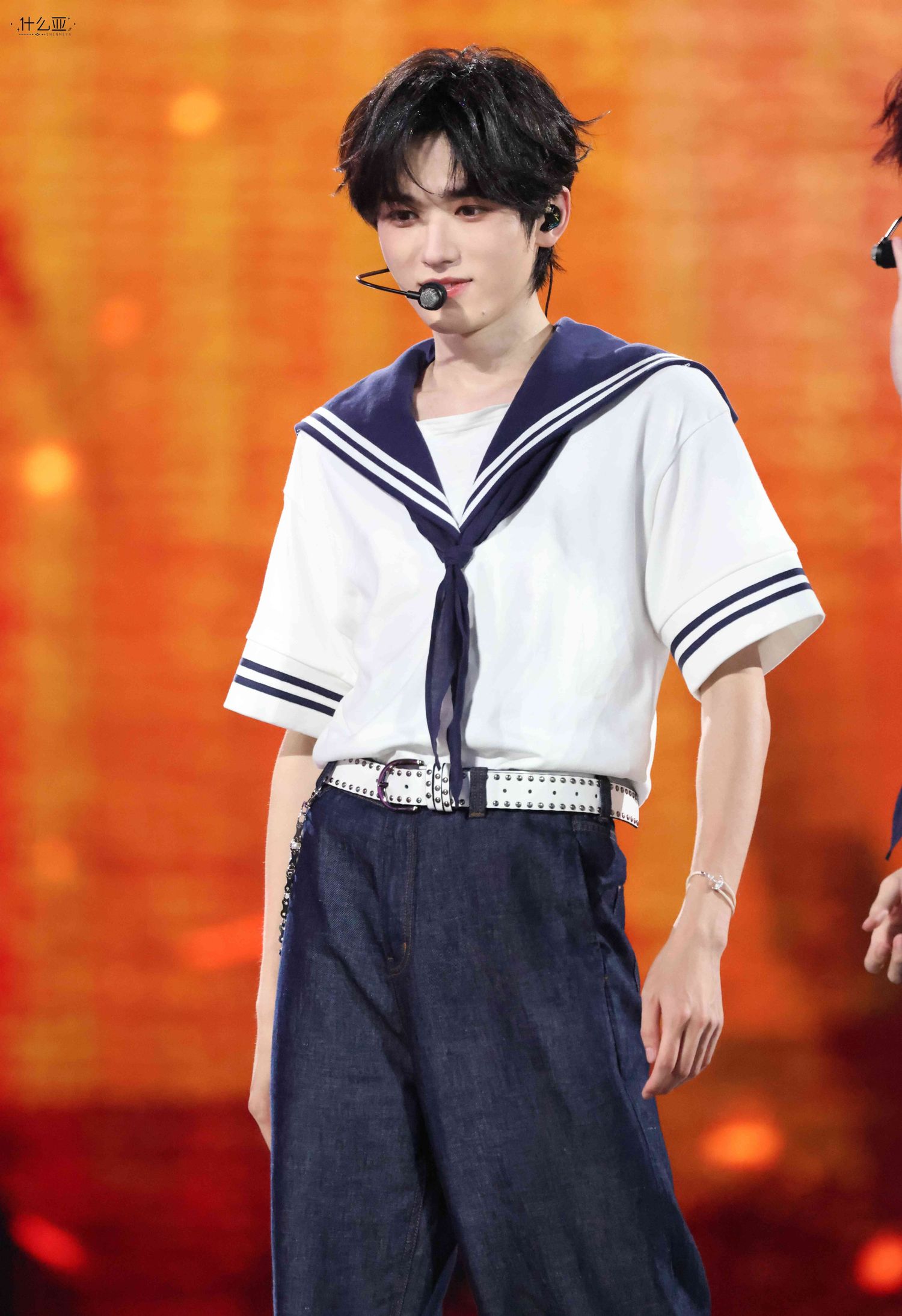舞台上,宋亚轩的每一个动作、每一个音符都深深打动了在场的每一位观众。他身着水手服,青春洋溢,仿佛将我们带入了他的音乐世界。旋转舞台上,他的每一帧都值得我们珍藏。