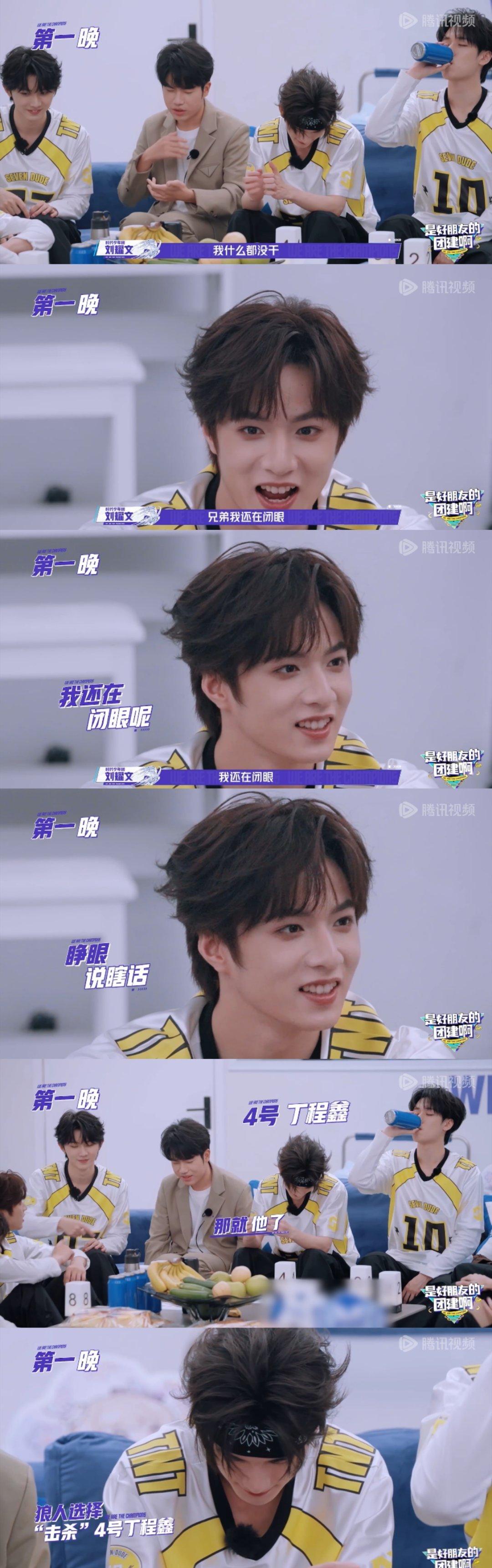 在狼人杀环节中,刘耀文睁着眼就上演了一出精彩表演。当他被问及为何还不睁眼时,他机智地回答:“兄弟我什么都没干,我还在闭眼呢。”这种幽默风趣的回答让在场的嘉宾和观众都捧腹大笑。接着,丁程鑫和严浩翔也轮流调侃他,使得整个环节更加有趣。