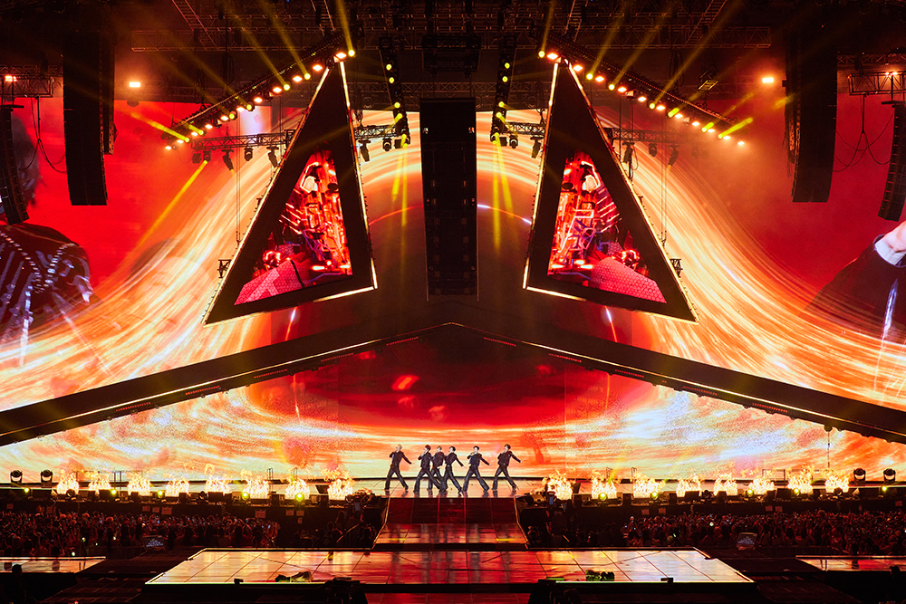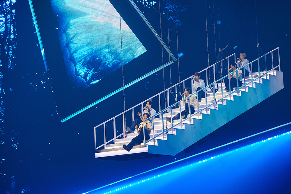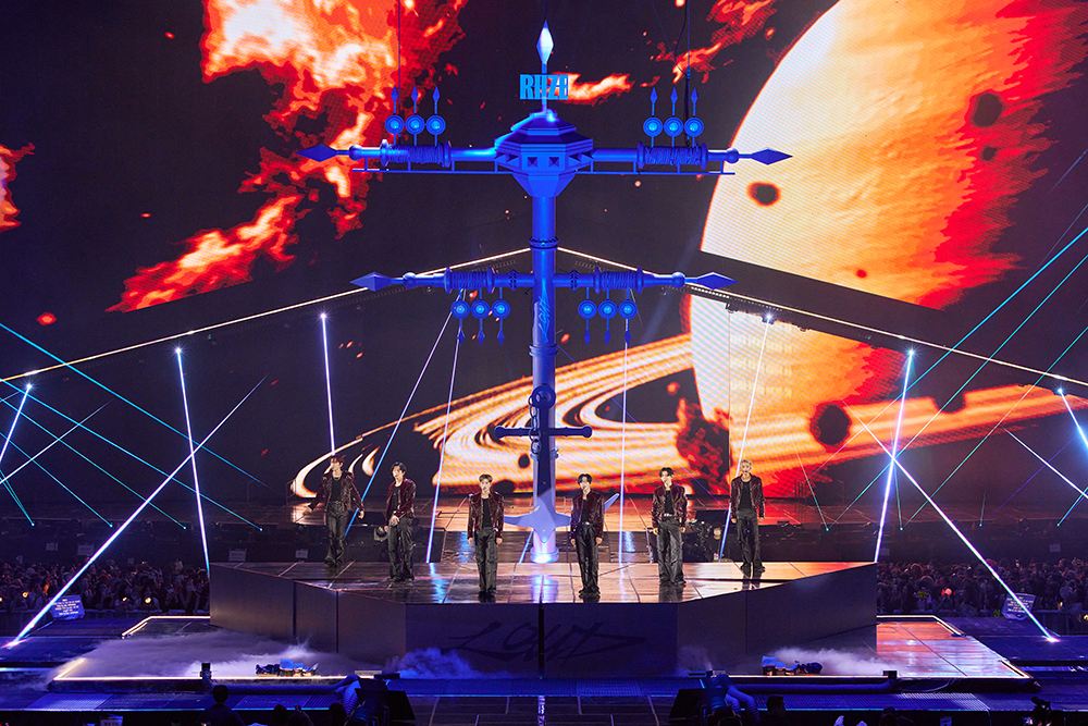 值得一提的是,本次演出不仅展现了RIIZE为迈向更高目标而踏上新旅程的决心与抱负,舞台设计也立体呈现了RIIZE的“Odyeesy”展开的时刻:主舞台由两个高21米、宽11米的三角形LED结构构成,中间设置了Kinesis阶梯,延伸舞台还设有甲板造型的大型移动升降台以及高达8.7米的风帆装置,整个场馆宛如承载RIIZE航行的巨型帆船,备受瞩目。