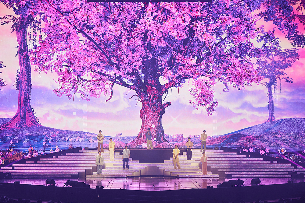 特别是,此次演出以重新诠释SUPER JUNIOR 20年作品集的曲目列表为基础,结合历届演唱会精华舞台演出,充分印证了“SUPER SHOW”的传承与价值。特别是以“10”的罗马字“X”造型打造的延伸舞台、悬挂在5米高空的动感灯光兼空中舞台、以E.L.F.(官方FANCLUB名)为主角的VCR故事,突出有机性的舞台结构,共同传递出“SUPER JUNIOR的20周年即是E.L.F.的20周年”的动人讯息。